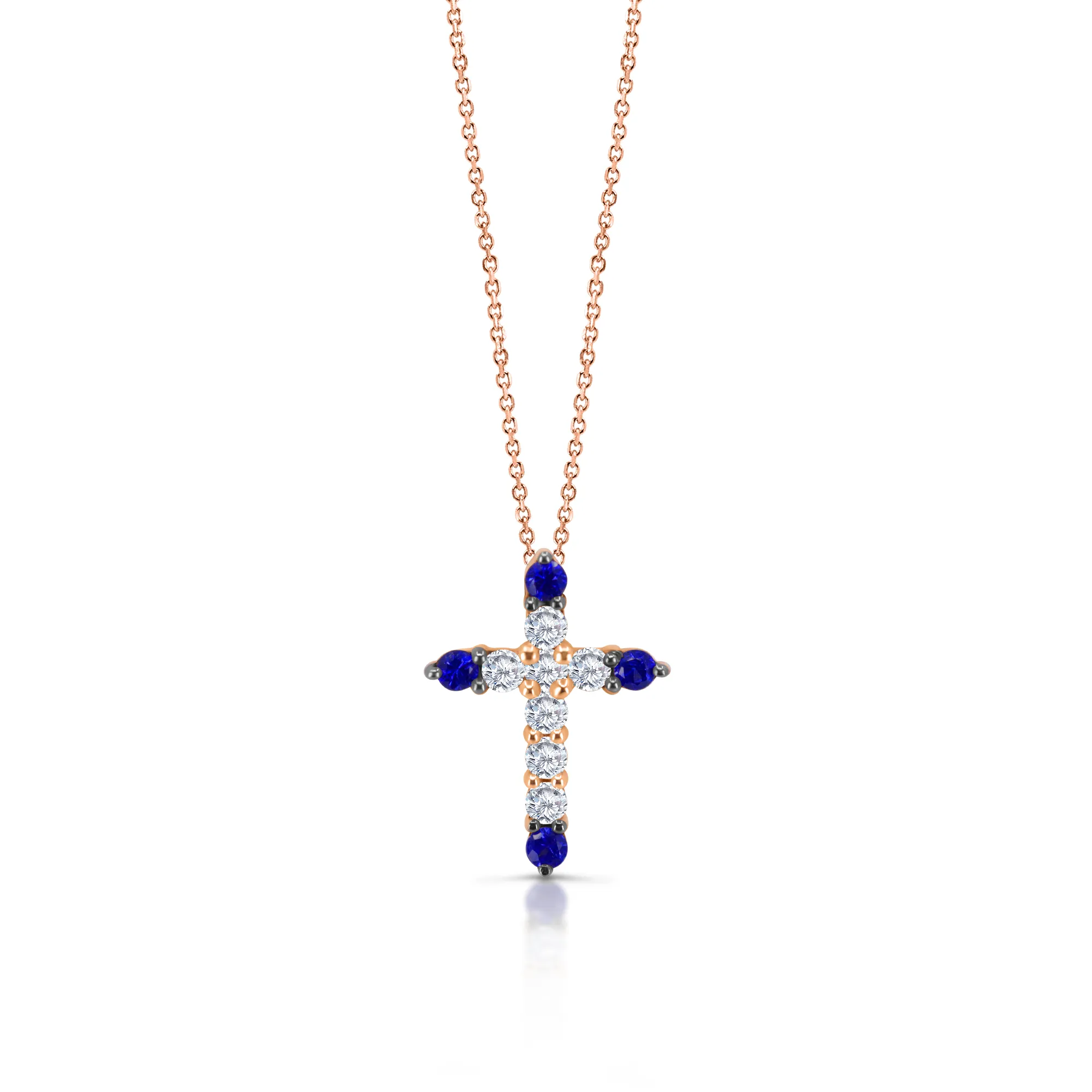 Pendente Croce con Zaffiri e Diamanti in oro rosa 18 kt: