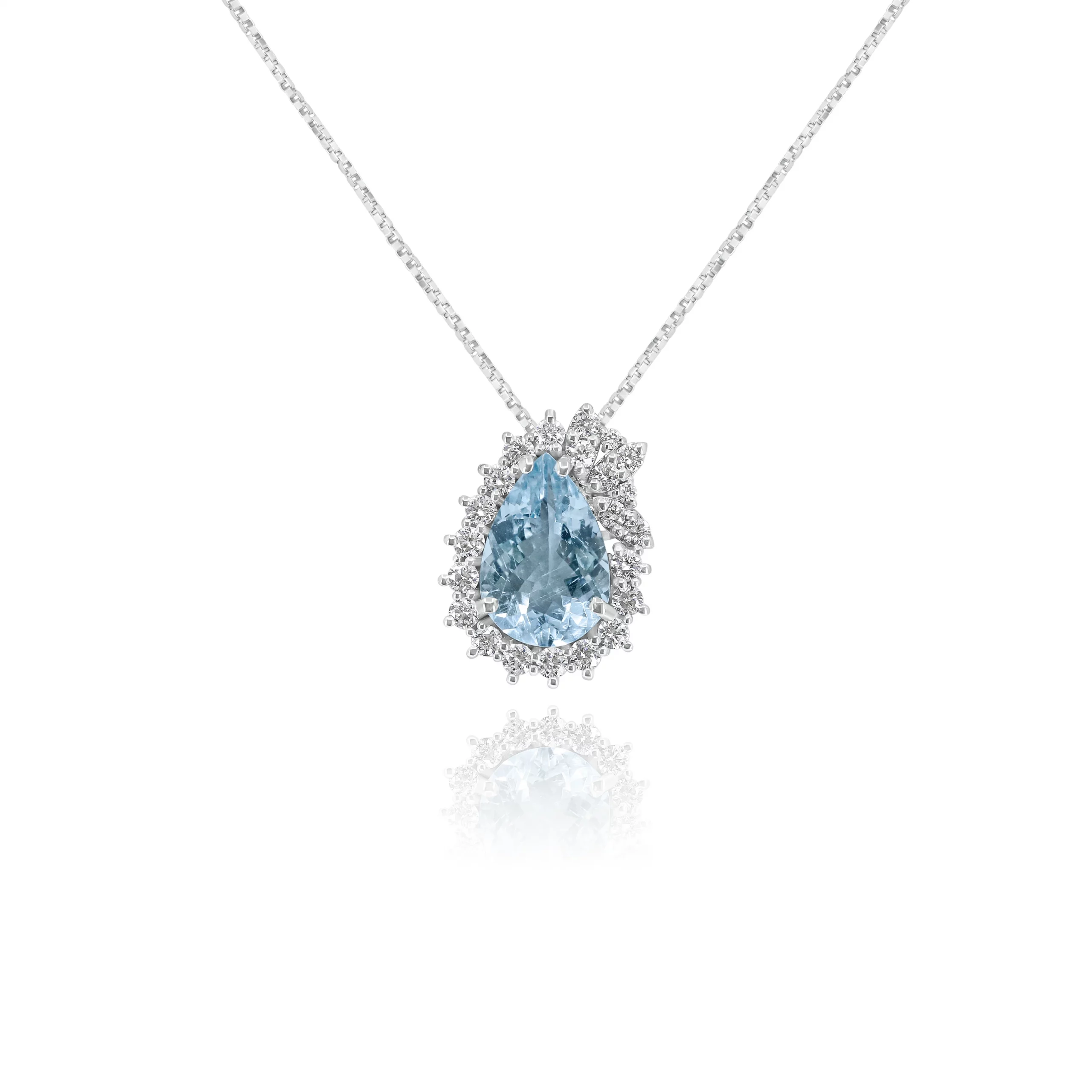 Pendente con Acquamarina e Diamanti in oro bianco 18 kt: