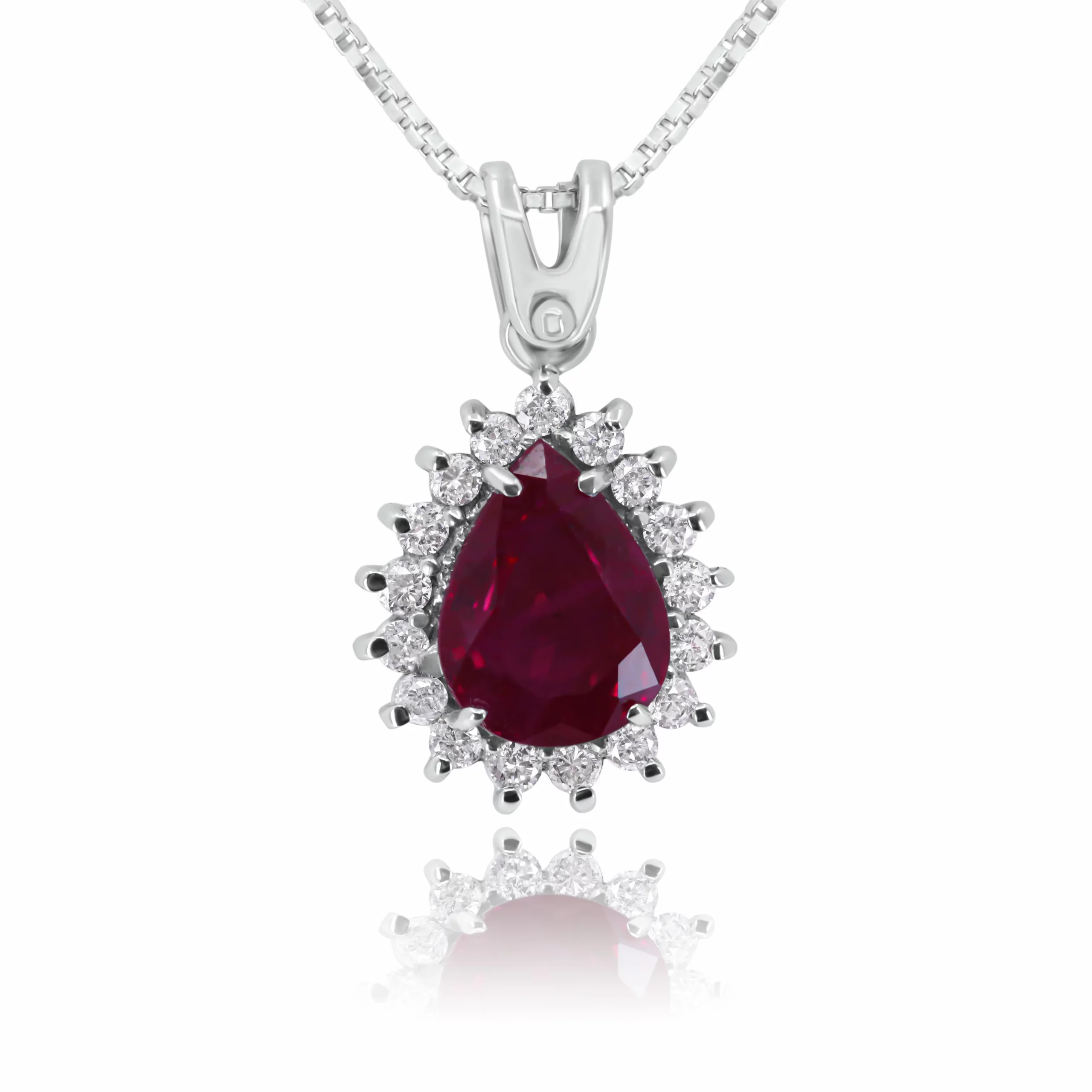 Pendente con Rubino e Diamanti in oro bianco 18kt:
