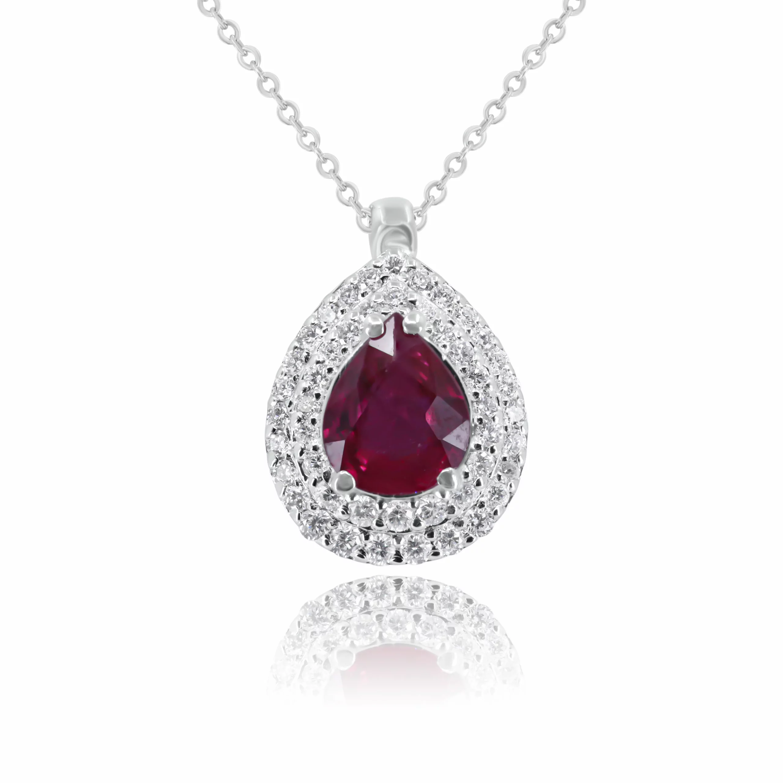 Pendente con Rubino e Diamanti in oro bianco 18kt: