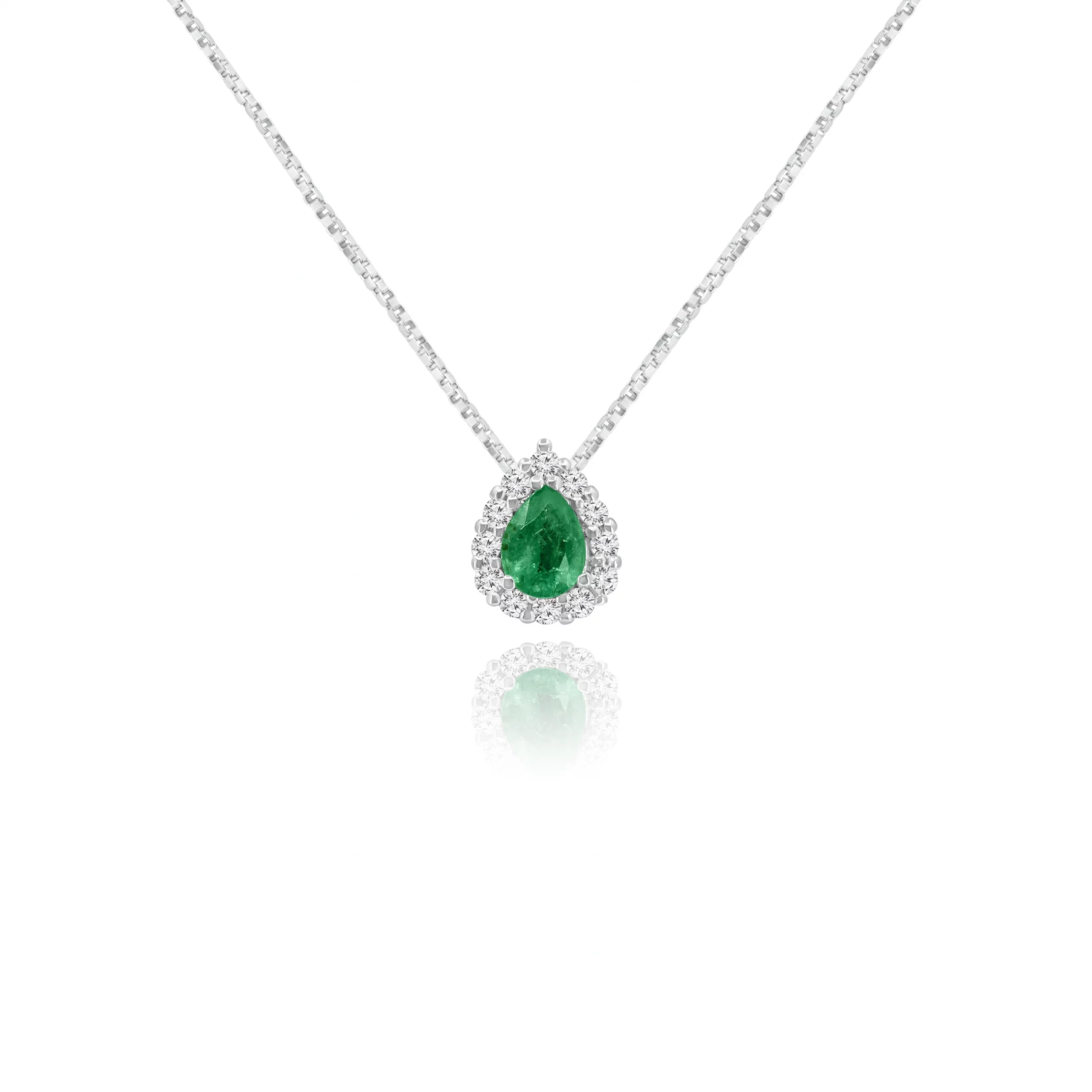 Pendente Goccia con Smeraldo e Damanti in oro bianco 18 kt: