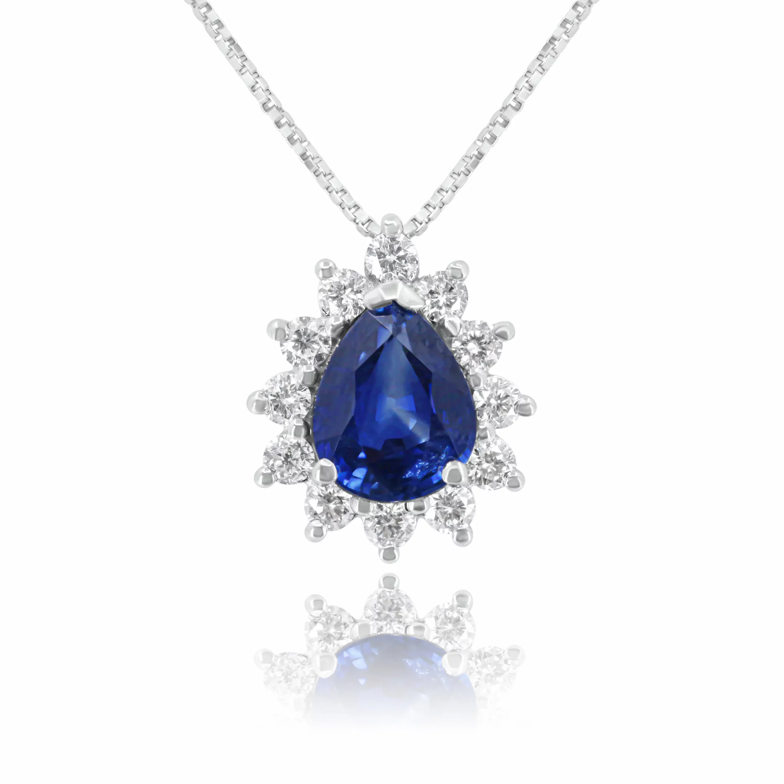 Pendente con Zaffiro e Diamanti in oro bianco 18 kt: