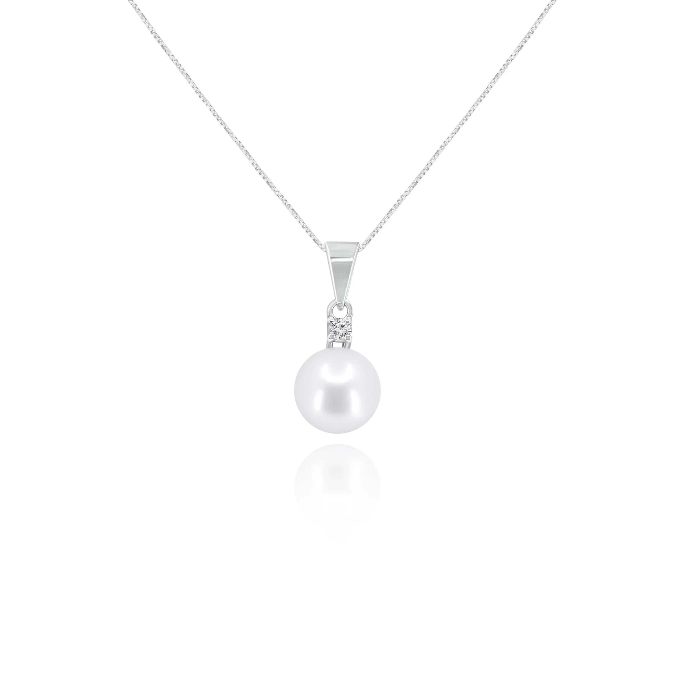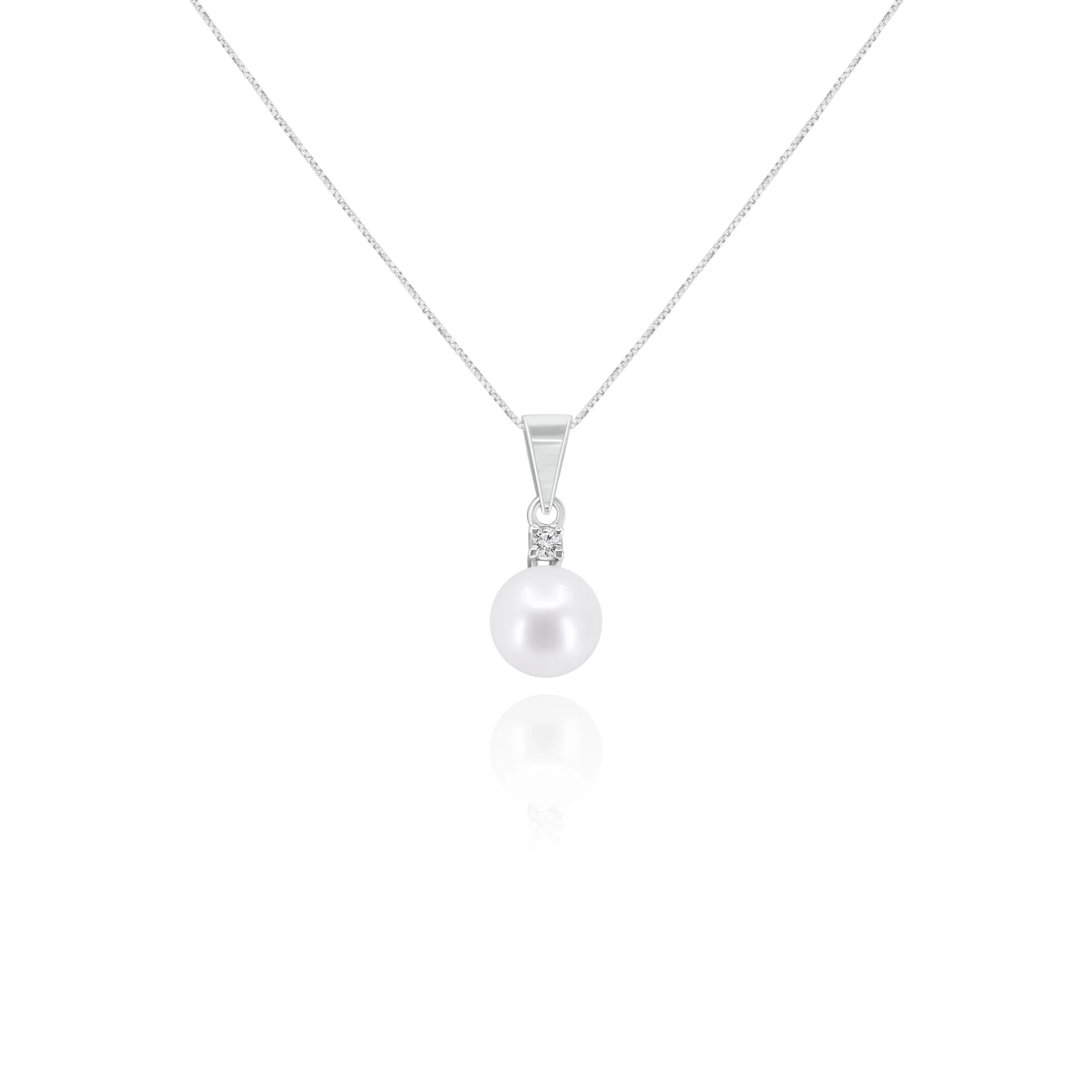 Pendente in oro bianco 18kt con Perla Akoya e Diamante, disponibile in diverse carature: