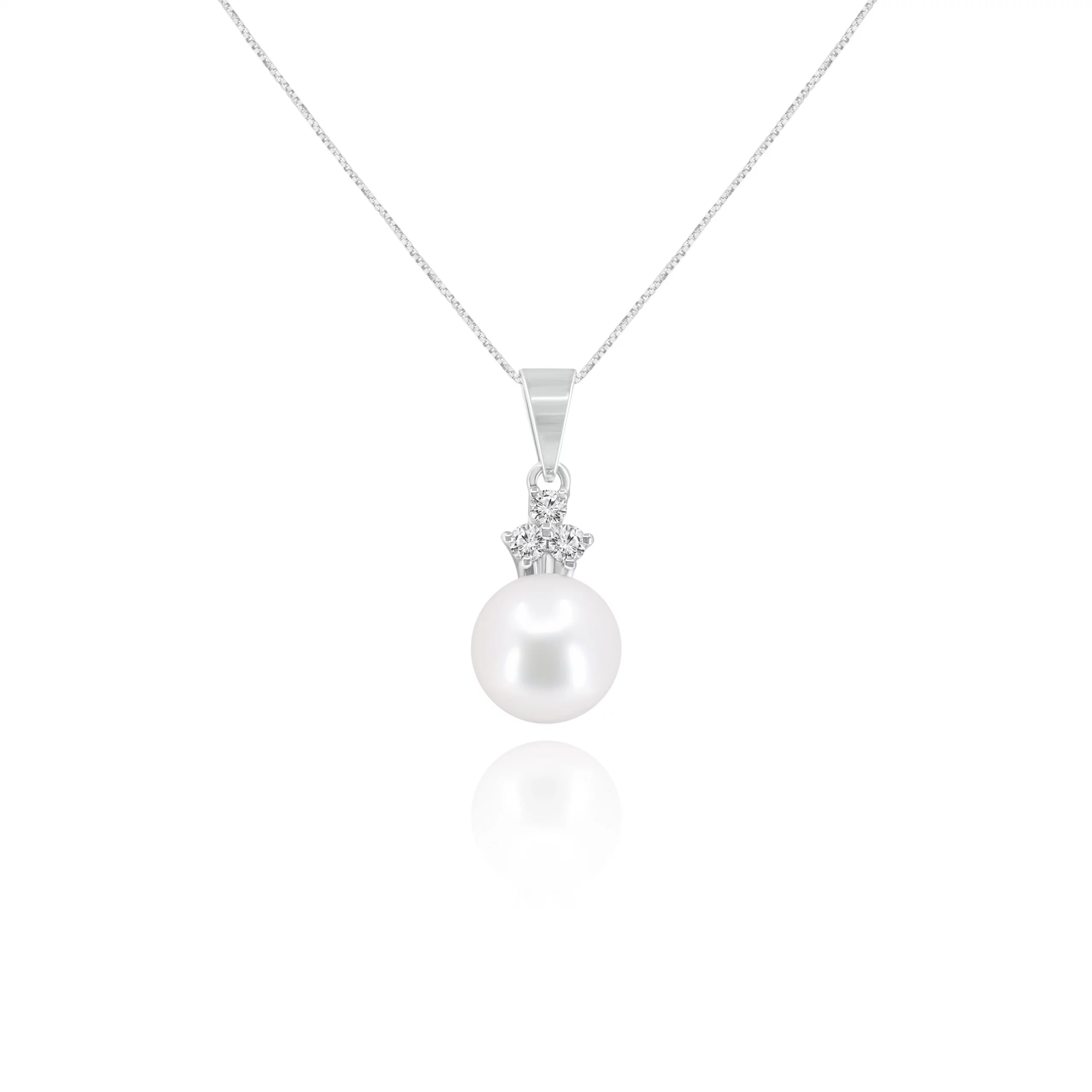 Pendente in oro bianco 18kt con Perla Akoya e Diamanti: