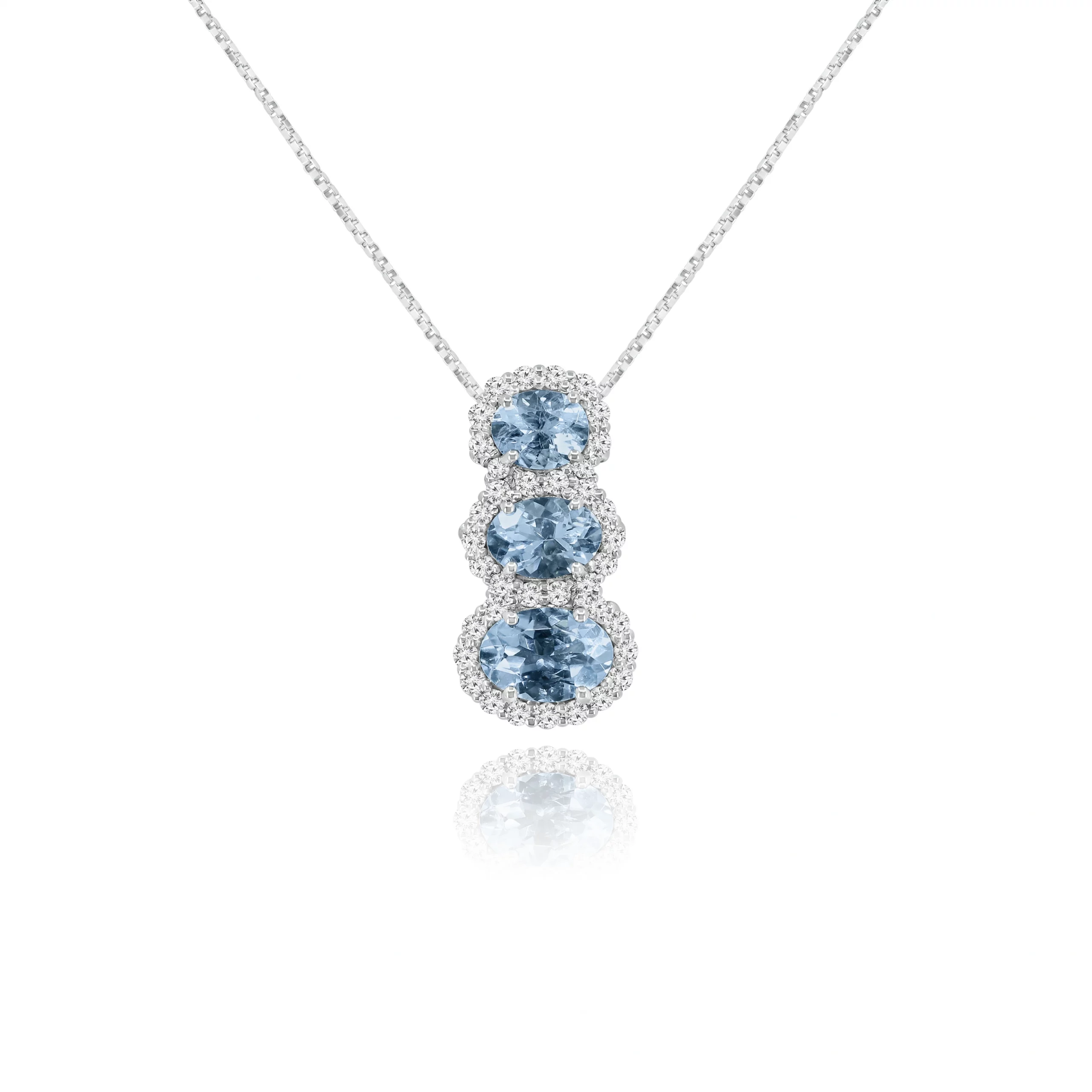 Pendente Trilogy con Acquamarina e Diamanti in oro bianco 18 kt, appartenente all’esclusiva collezione IGDC: