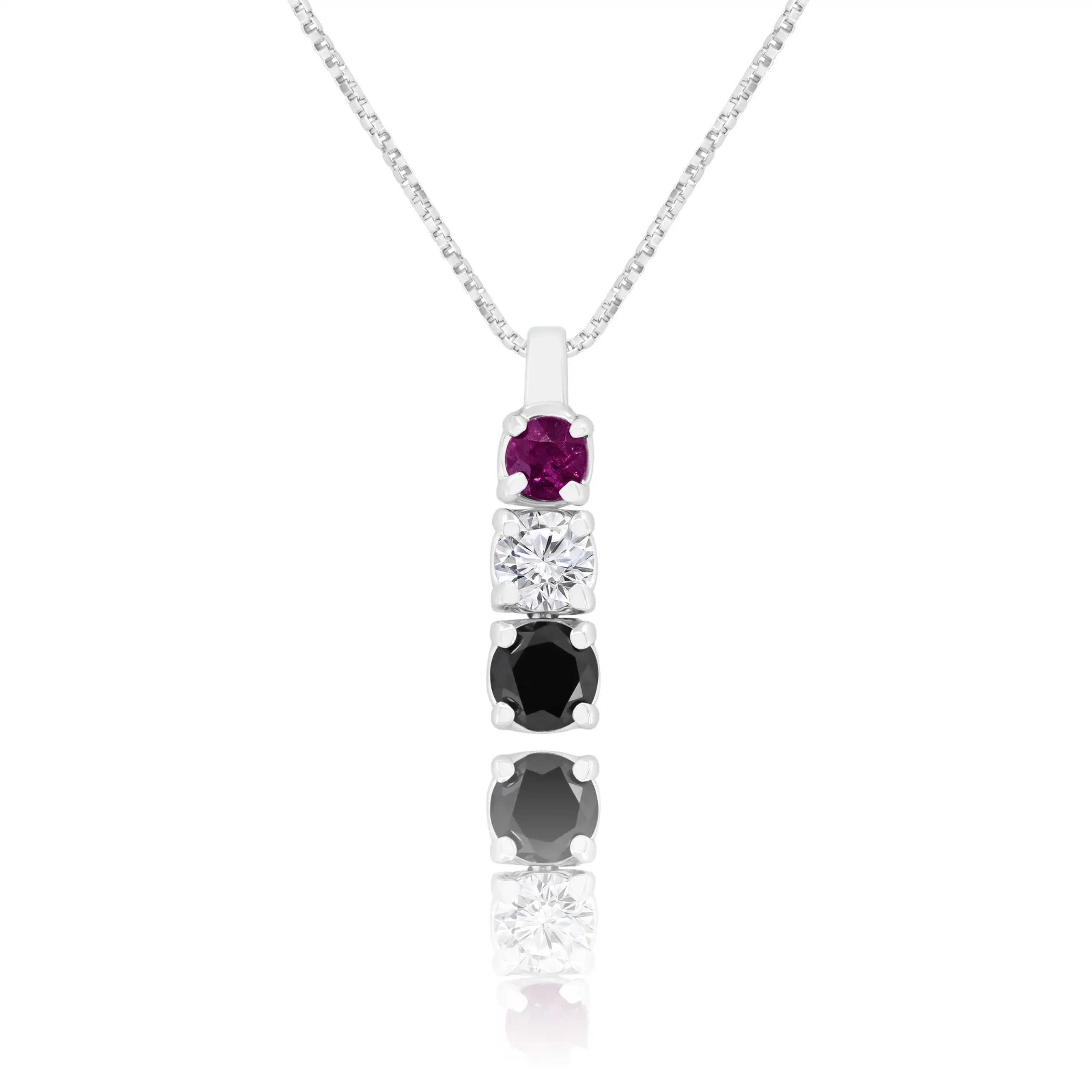Pendente Trilogy con Rubino e Diamanti in oro bianco 18kt.
