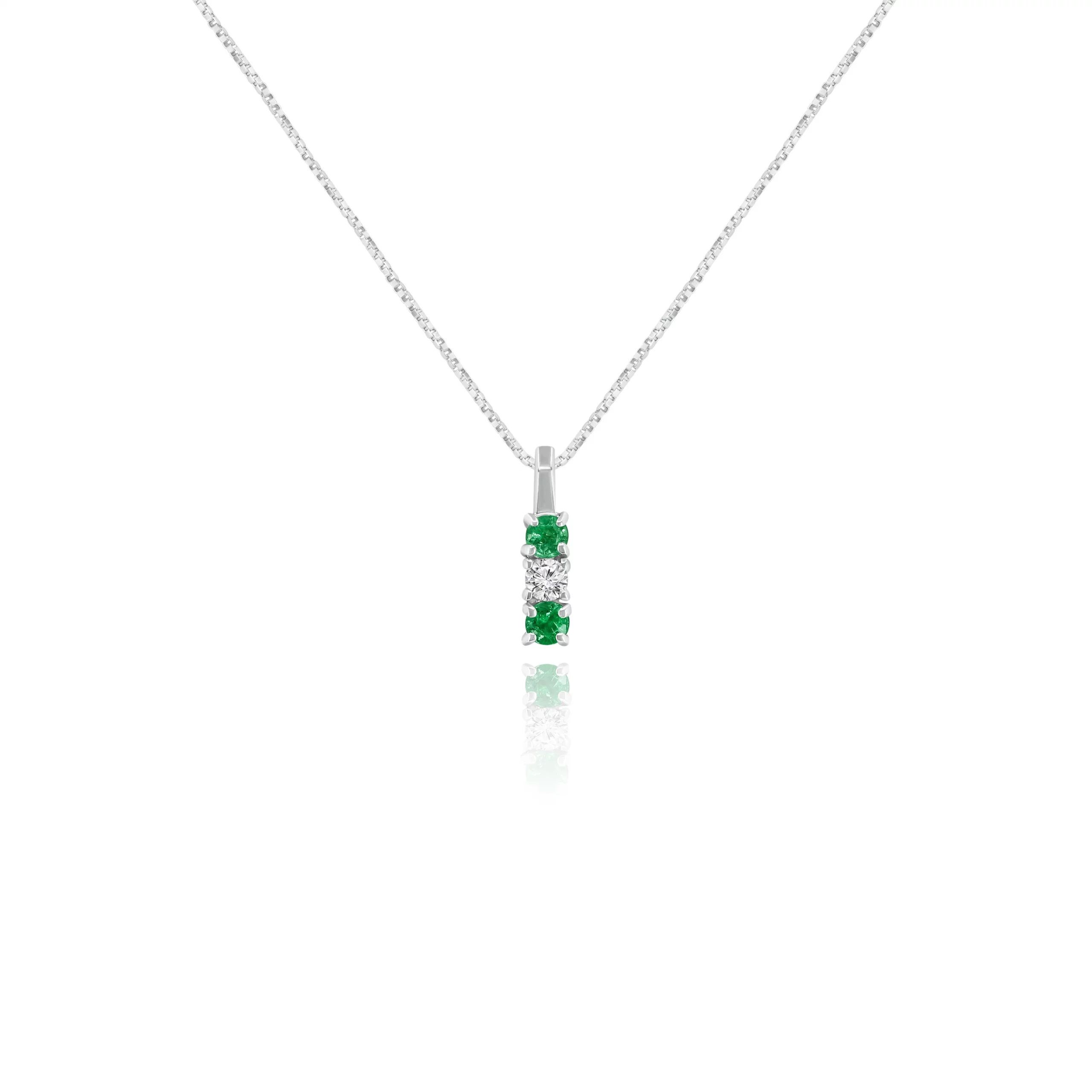 Pendente Trilogy con Smeraldi e Diamante in oro bianco 18 kt.