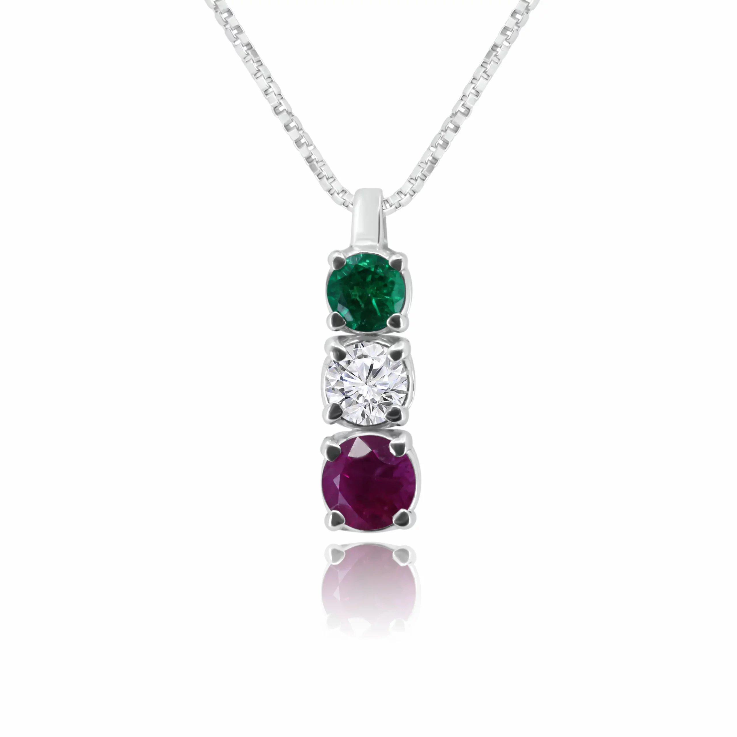 Home / Diamanti, Pendenti, Rubini, Smeraldi / Pendente Trilogy con Smeraldo Rubino e Diamante