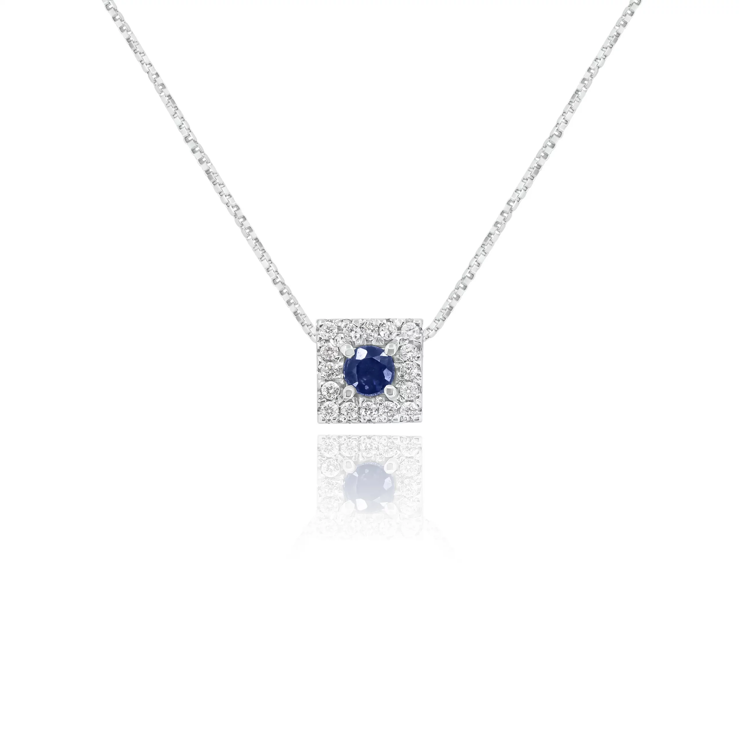 Pendente con Zaffiro e Diamanti in oro bianco 18 kt: