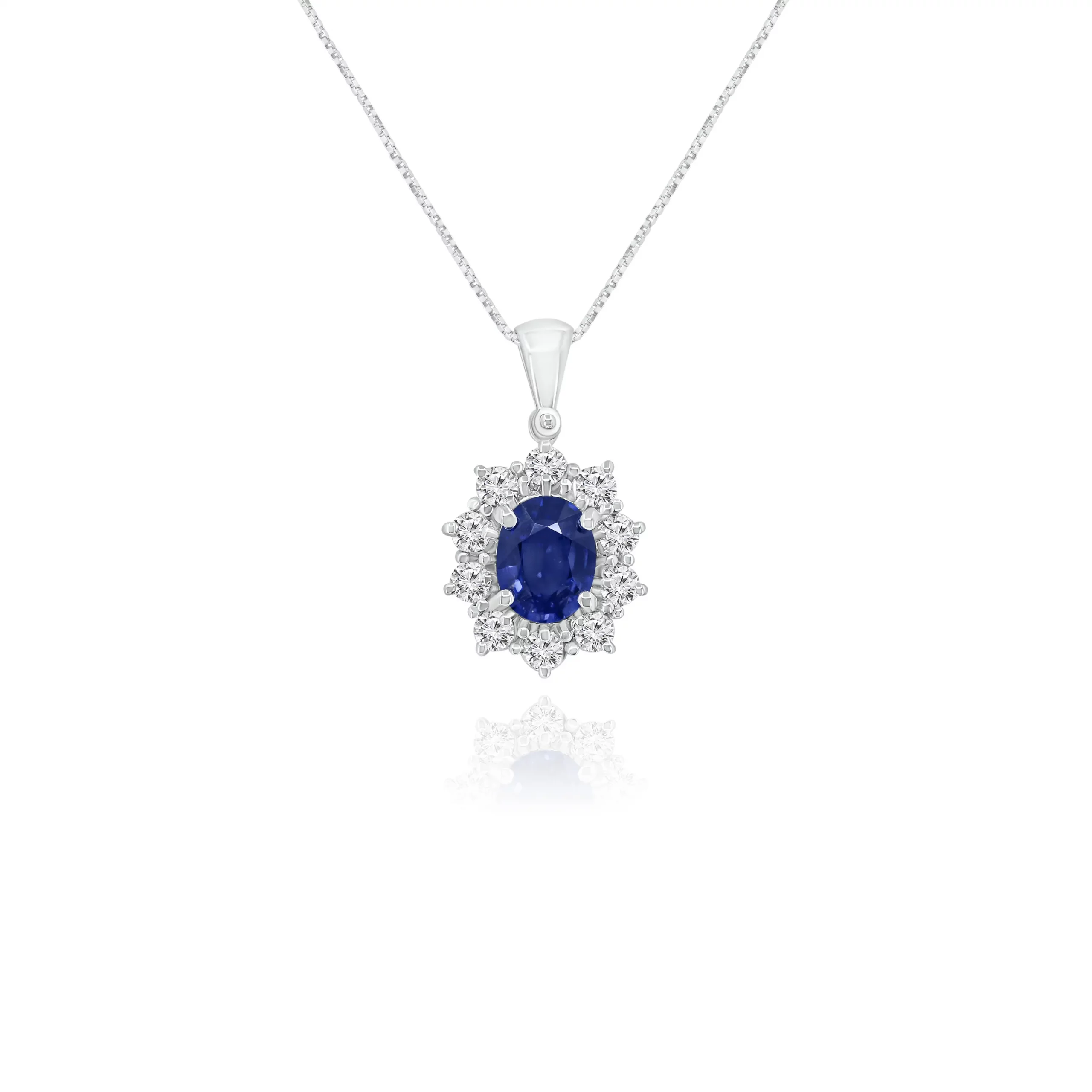Pendente con Zaffiro e Diamanti in oro bianco 18 kt: