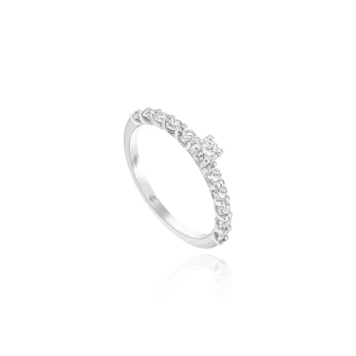 Anello Solitario con Diamante e Diamanti laterali in oro bianco e rosa 18 kt disponibile in diverse carature: CT 0.52 1 Diamante CT 0.52 VS1 F 48 Diamanti CT 0.93 VS1 F CT 0.16 1 Diamante CT 0.16 VS1 F 48 Diamanti CT 0.83 VS1 F